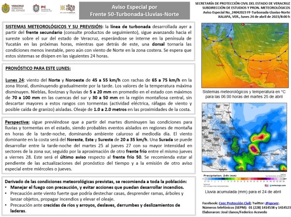 Población Veracruzana: Aviso Especial por Surada-Frente frío-Lluvias-Norte