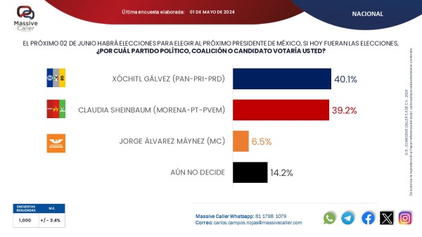 Encuesta Massive Caller: Manzana de la discordia. Xóchitl feliz, Claudia la reprobó y Máynez, ni la fumó