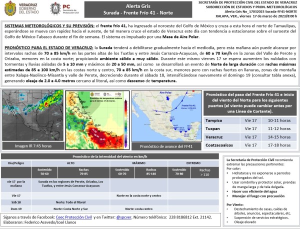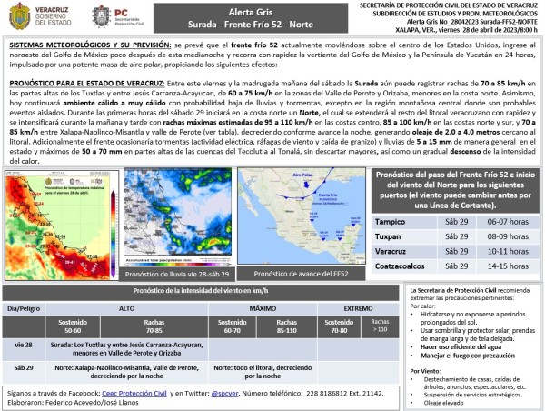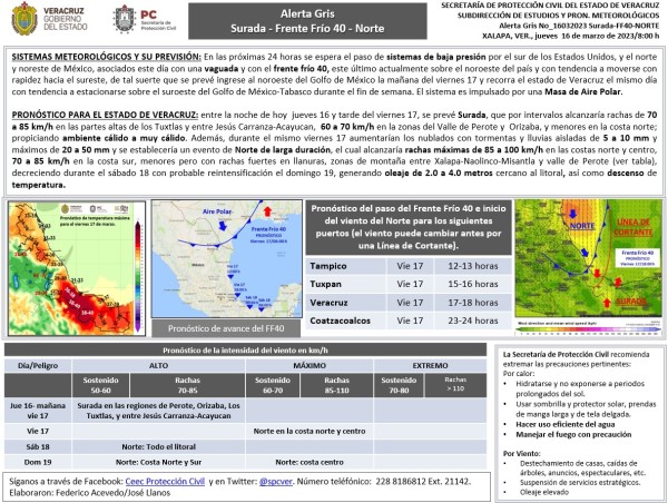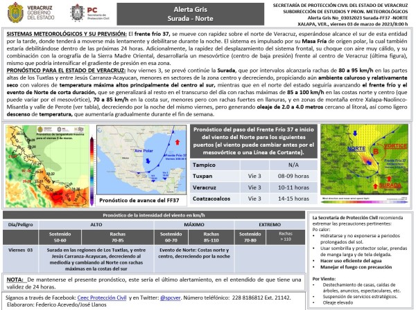 Población veracruzana: #AlertaGris por Surada - Frente frío - Norte - Lluvia