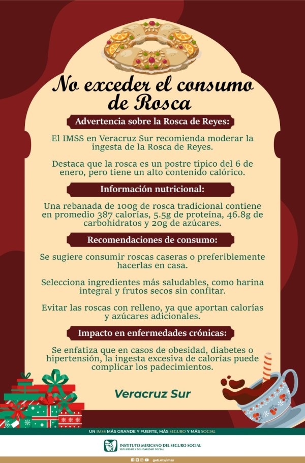 Exhorta IMSS Veracruz Sur a no exceder consumo de Rosca de Reyes
