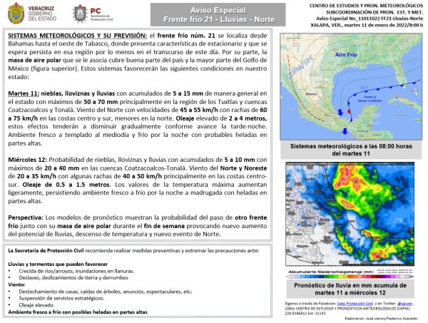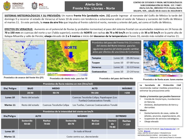 Población veracruzana: se emite Alerta Gris por Frente frío-Lluvias-Norte