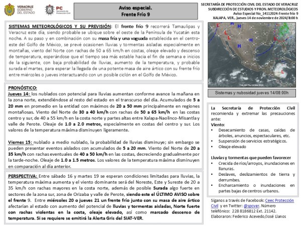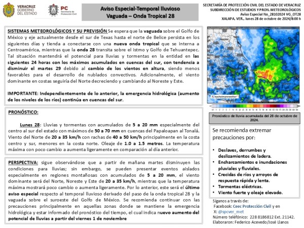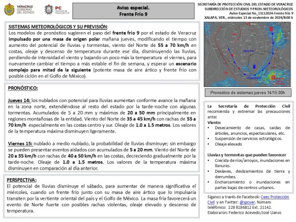 Población veracruzana: Aviso Especial por lluvias y Norte fuerte