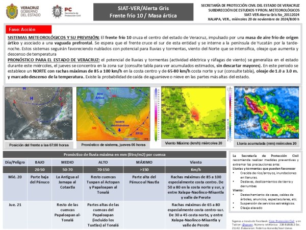 #AlertaGris del #SIAT_VER por frente frío y Norte