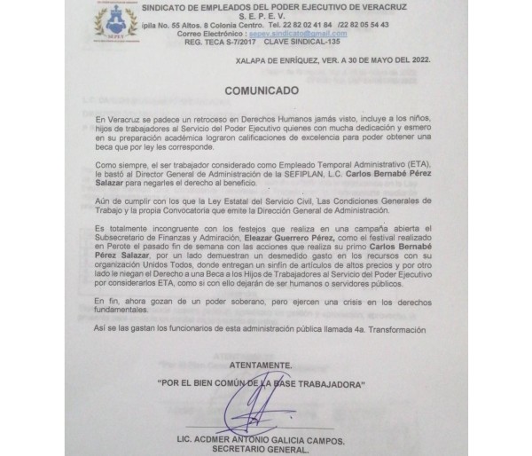 Niegan becas a hijos de Trabajadores al Servicio del Poder Ejecutivo en Veracruz.