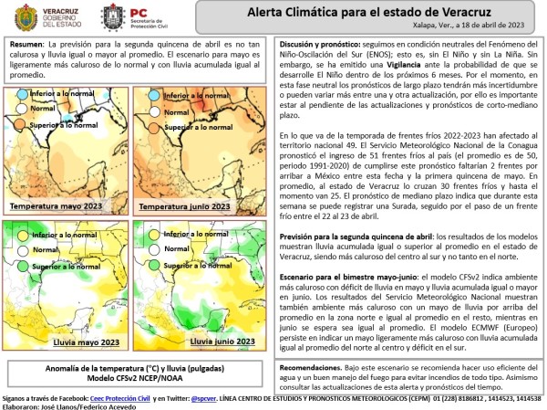 Población Veracruzana: Aviso Especial por Frente frío-Lluvias-Norte