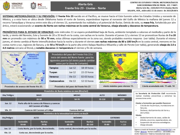 Población veracruzana: Alerta Gris por Frente frío-Lluvia-Norte