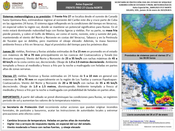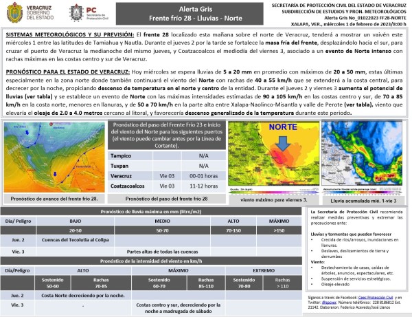 Población veracruzana: se desactiva #AlertaGris, se emite #AvisoEspecial por Frente frío-Norte
