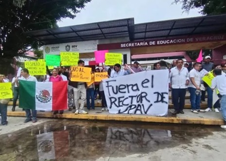 Se manifiestan asesores solidarios del Bachillerato de la UPAV y exigen la destitución del rector Sergio Torres Mejía
