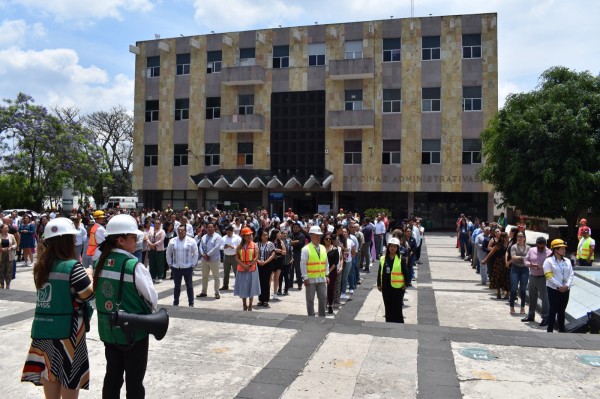 Cabe señalar que, tan solo en la sede delegacional, se desalojó a 400 trabajadores en un tiempo aproximado de 2 minutos 36 segundos con 45 brigadistas, encabezados por la titular, doctora Edith Jiménez Martínez y el cuerpo de Gobierno.