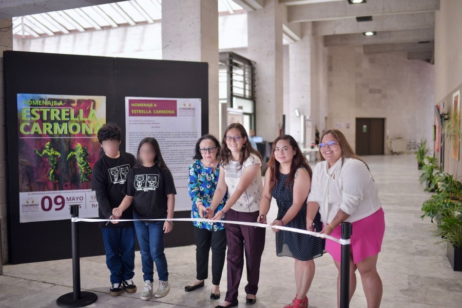 Xalapa, Ver., 09 de mayo de 2025.- Como reconocimiento a su trayectoria y aportaciones al arte contemporáneo, en las instalaciones del Congreso de Veracruz la presidenta de la Mesa Directiva de la LXVII Legislatura, diputada Tanya Carola Viveros Cházaro, y la historiadora Nancy Torres, inauguraron la muestra denominada "Homenaje a Estrella Carmona".