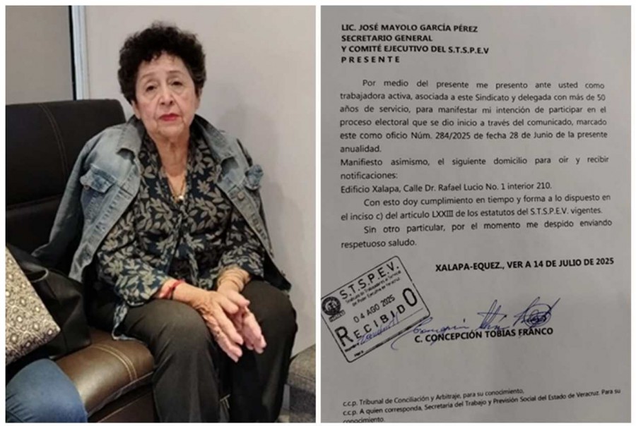 Tobías Franco es trabajadora activa, asociada el STSPEV con más de 50 años de servicio y delegada sindical en el área de Ejecución Fiscal en SEFIPLAN y quien cumpliendo con los estatutos ha manifestado sus intenciones -junto con un numeroso grupo de empleados sindicales en diferentes dependencias del gobierno estatal-, de participar en el proceso electoral y lo ha notificado oficialmente tanto a la directiva sindical actual, como al Tribunal de Conciliación y Arbitraje de la Secretaría de Trabajo, Previsión Social y Productividad del Estado de Veracruz.