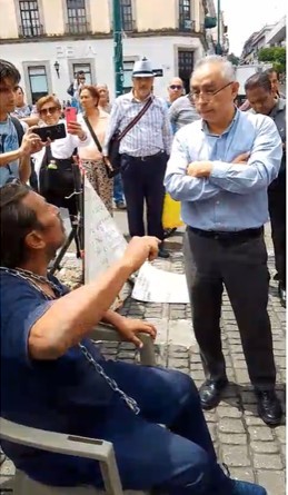 "No quieren hablar conmigo, llevo 40 días sin comer y tres días sin tomar agua. Hablé al 911 y me dicen que es un capricho lo que yo estoy haciendo aquí; no es un capricho, es una manifestación porque no me quieren atender, incluso estas personas (funcionarios de gobierno) me insultaron y se burlaron de mí, que tenía 100 kilogramos de sobrepeso, que estoy comiendo por allá", argumentó por último en su defensa. |