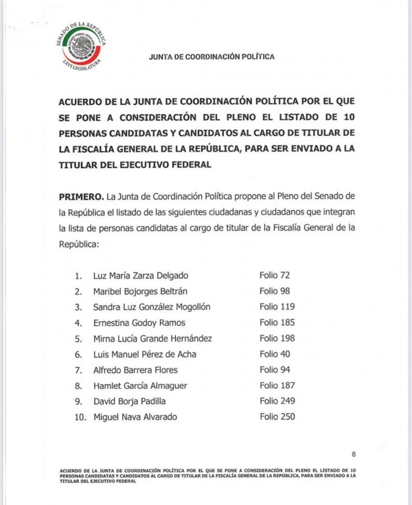 Dicho listado será enviado al titular del Ejecutivo Federal, Claudia Sheinbaum Pardo. ... |