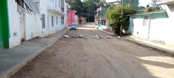 “Calle Sol colonia 26 de Agosto en Xalapa cerrada al transito vehicular por vecina inconforme por que @AytoXalapa no les pavimenta la calle, llevan dos meses asi, sin que nadie ejerza la ley para, que puedan circular los vehículos” (sic).
