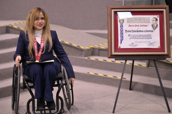 | .- Xalapa, Ver., 25 de febrero de 2026.- Como reconocimiento a su dedicación en la lucha por la accesibilidad, la inclusión y el deporte y contra las barreras que enfrentan las personas con discapacidad, la LXVII Legislatura del estado entregó la medalla y diploma Adolfo Ruiz Cortines, edición 2025, a la ciudadana María Luisa Bandala Pantoja.