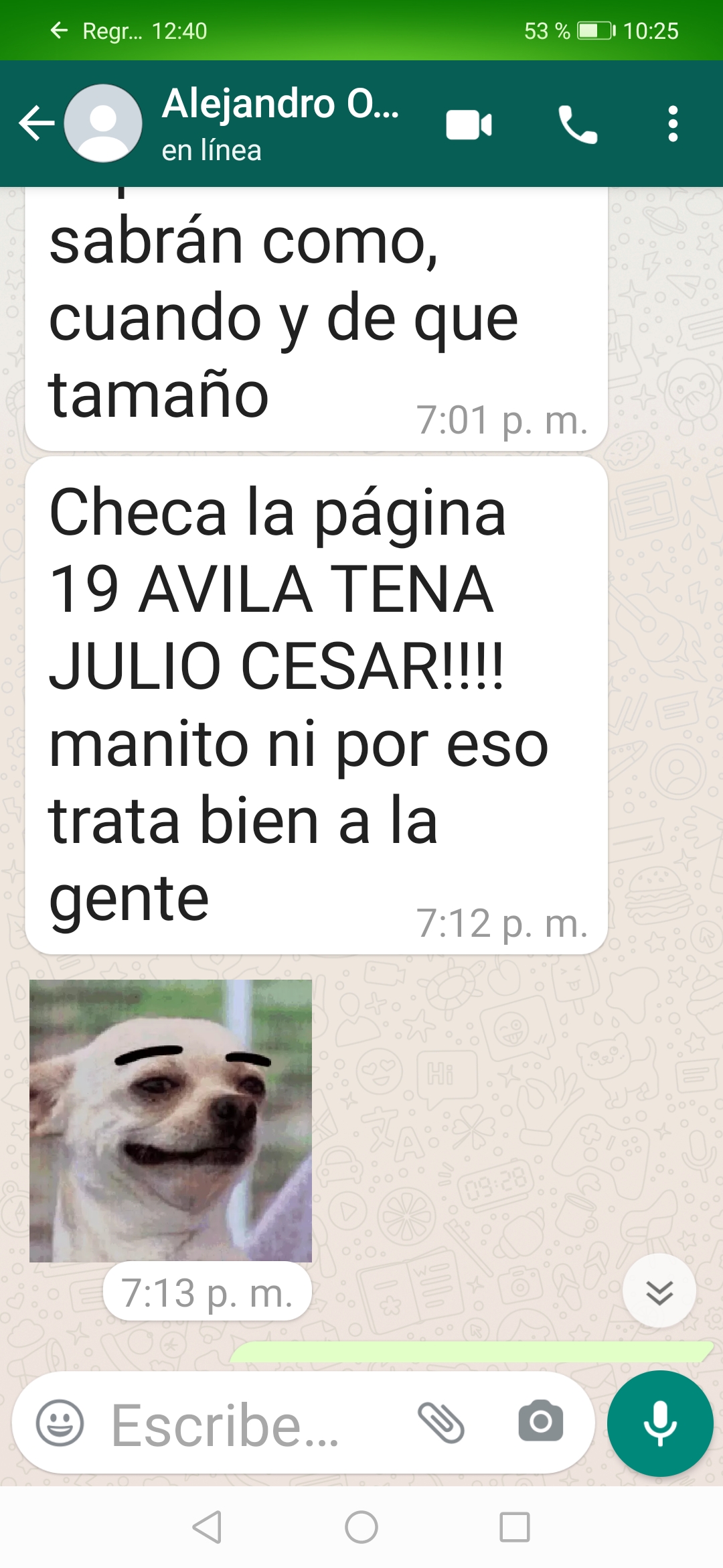 Con el paso de las semanas y de los meses Alejandro, que no es Magno como el conquistador, si no más bien un remedo de ser humano, cobarde, enfermo de odio, que apuñala por la espalda, que tira la piedra y esconde la mano, me llamaba por teléfono o me escribía a través del Whatsapp, para darme órdenes de lo que debía y no debía publicar, cual si fuera mi jefe.