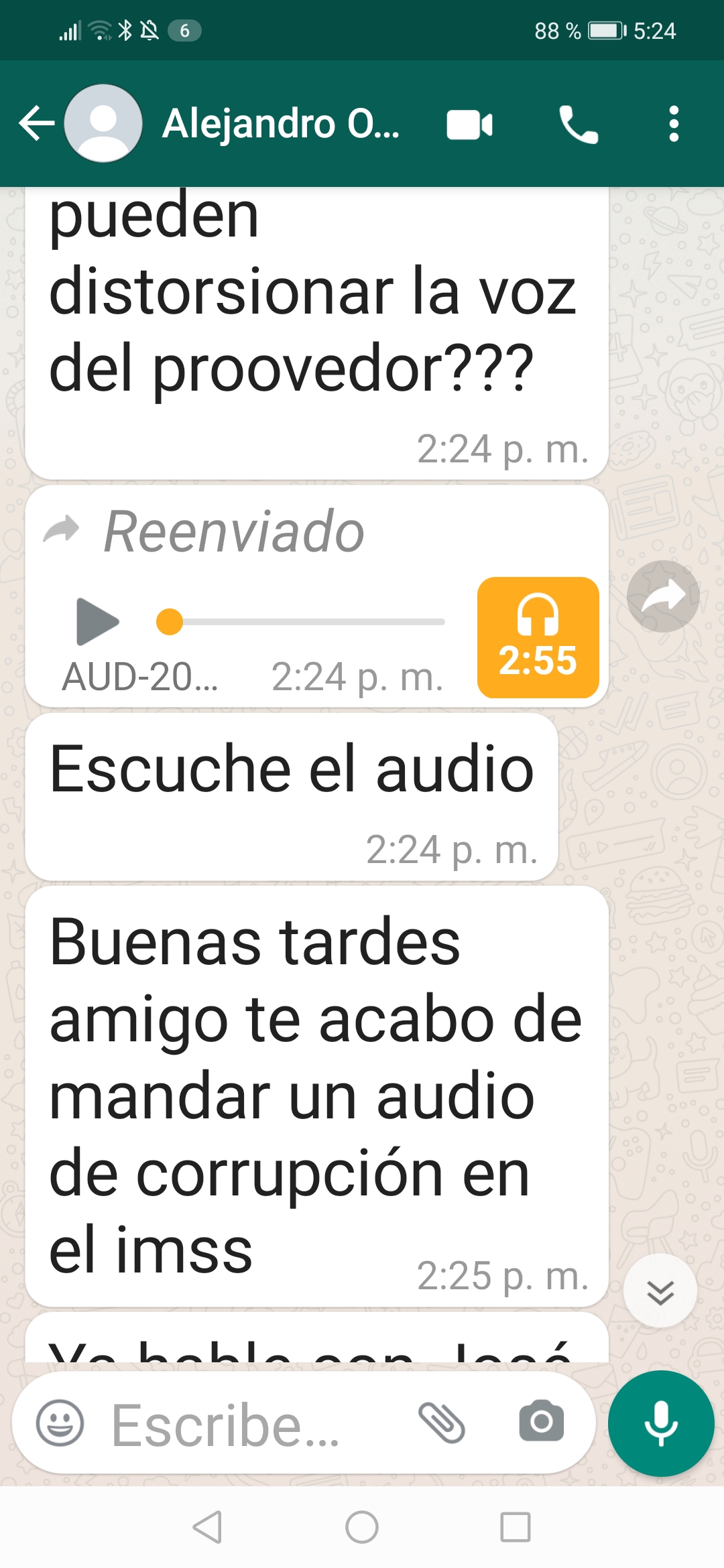 Hoy, el IMSS está infiltrado por la delincuencia organizada, la misma que controla el robo y contrabando de medicamentos, la sustracción de equipos y personajes como Alejandro Ortiz dicen querer combatir la corrupción cuando en realidad la arropan, la toleran y quizá hasta son cómplices. Sé a quiénes me enfrento, por eso, hago público que cualquier atentado que llegue a sufrir este periodista o cualquiera de los miembros de su familia, hago directamente responsable a Alejandro Ortiz Batista, un loco, esquizofrénico, capaz de cualquier cosa porque su odio no tiene límites.
